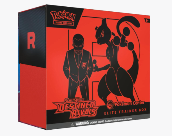The nefarious Team Rocket is setting its latest plan into motion, and heroic Trainers are racing to stop it. Join forces with the likes of Cynthia and Garchomp ex, Ethan and Ho-Oh ex, or Arven and Mabosstiff ex… Or reconsider your loyalties and fight alongside Team Rocket’s Pokémon like Mewtwo ex—under the command of Giovanni! Choose a side, assemble your allies, and battle boldly in the Pokémon TCG: Scarlet & Violet—Destined Rivals expansion!The Pokémon TCG: Scarlet & Violet—Destined Rivals Pokémon Center Elite Trainer Box includes: