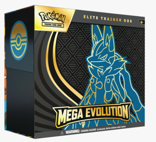 Striving to become stronger, Pokémon of all types are putting everything on the line to become Mega Evolution Pokémon ex! Harness the strong aura of Mega Lucario ex, embrace the overflowing power of Mega Gardevoir ex, and team up with more of these powerful Pokémon that boast devastating attacks and massive HP. But consider your strategy carefully—extra power brings extra risks! Choose your Pokémon partners and prepare for the biggest battles you’ve ever seen in the Pokémon TCG: Mega Evolution expansion!The Pokémon TCG: Mega Evolution Elite Trainer Box includes: