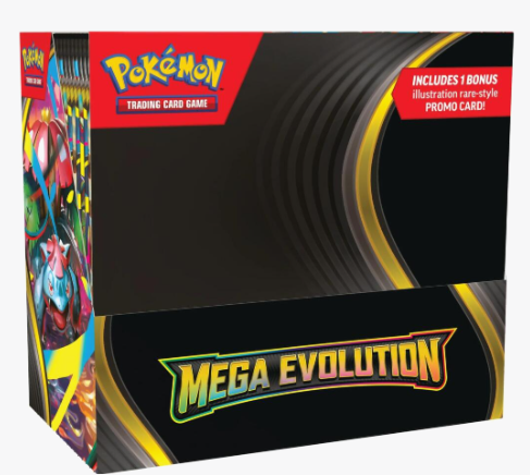 Card Text:Mega Evolve Your Strength to the Next Stage! Striving to become stronger, Pokémon of all types are putting everything on the line to become Mega Evolution Pokémon ex! Harness the strong aura of Mega Lucario ex, embrace the overflowing power of Mega Gardevoir ex, and team up with more of these powerful Pokémon that boast devastating attacks and massive HP. But consider your strategy carefully—extra power brings extra risks! Choose your Pokémon partners and prepare for the biggest battles you’ve ever seen in the Pokémon TCG: Mega Evolution expansion!