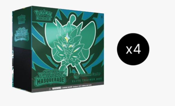 Card Text:Each Twilight Masquerade Elite Trainer Box Case contains 4 boxes.